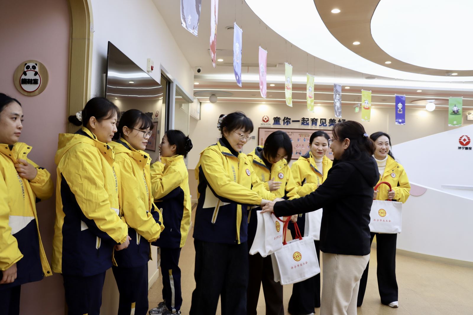 在济宁市托育综合服务中心,葛琰一行向托育行业新就业形态劳动者致以节日问候,并向辛勤奋斗在托育一线的保育员致以崇高的敬意。随后将花生油、护手霜等“温暖礼包”送到劳动者手中,切实把党委政府的关心关怀和工会组织的温暖送到了职工的心坎上。保育员们纷纷表示,将把这份关怀与温暖转化为工作的动力,以更加饱满的热情和更加专业的态度投入到托育工作中,为孩子们创造一个更加美好的成长环境。