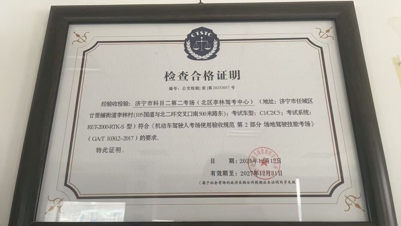 专家组严格对照相关行业验收标准,对交服公司七处考场的场地布局、安全防护设施,考试系统、人员资质、管理制度与应急预案等管理与服务进行了详尽的现场检测、全面的功能测试及严谨的资料审核。专家组一致认为,交服公司在场地设施、考试系统、监督管理等各方面,均达到了国家及行业相关标准要求,对交服公司在考场建设中体现出的前瞻性规划、高质量投入和规范化管理给予了高度评价,并向交服公司正式颁发了检验合格证明。